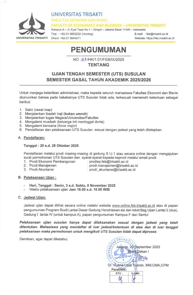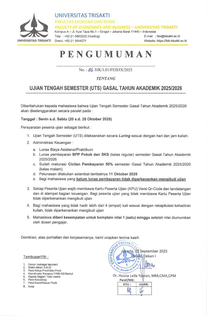 Pengumuman Pelaksanaan Ujian Tengah Semester (UTS) Ganjil TA. 2025/2026 |